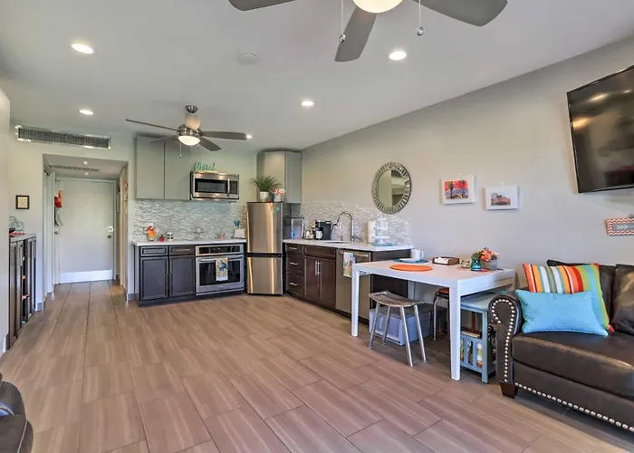 Pool And Hot Tub Access Palm Desert Studio Condo is just 9 minutes' stroll from the El Paseo Shopping District and welcomes guests with a Jacuzzi. The welcoming apartment is situated in a shopping area and is 2.8 km from the City of Palm Desert Civic Center Park.